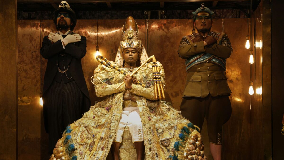 Alicja Kwade “Siège du Monde”, 2025, marmo Azul Macaubas bronzo con patina nera, 96,5 x 54 x 58 cm. Photo Roman März, courtesy dell’artista e Galleria Continua